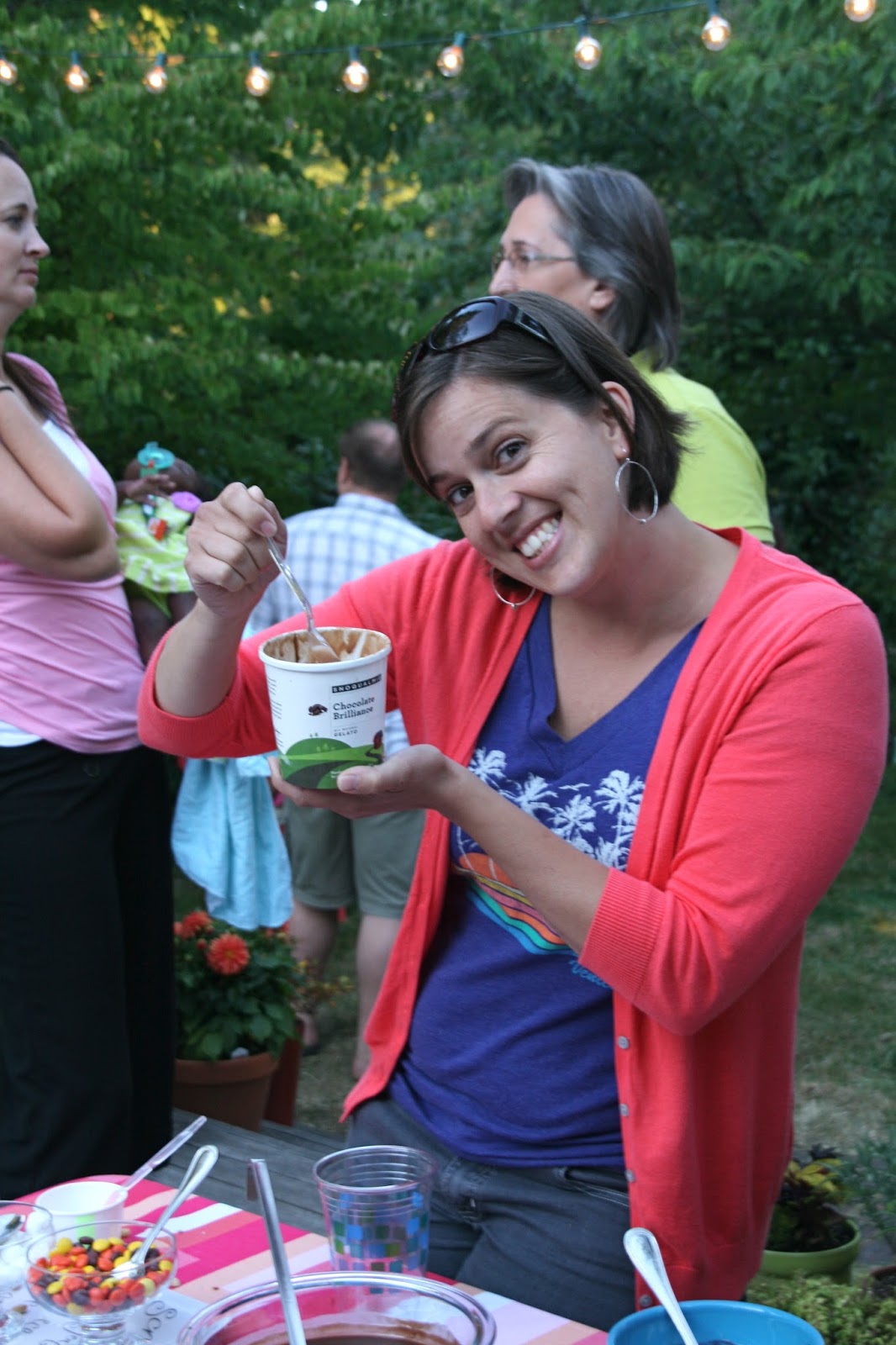 | When we got to the tail end of a flavor, we gave the last person the option of eating right out of the carton. This way there was room for plenty of toppings! |